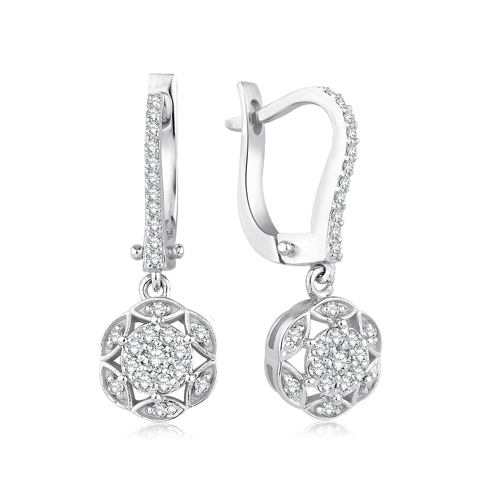 Design: Ørehængere med diamant-roset og krans af diamanter