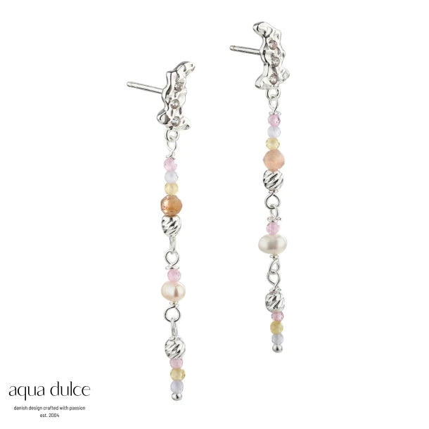 Disse forgyldte ørestikker i sterling sølv tilføjer en subtil elegance med deres ruflede vedhæng, zirkonia, halvædelsten og hvide ferskvandsperler. Smykket kombinerer forskellige elementer for at skabe en unik og raffineret stil. Den gyldne glans, det strålende skær af zirkonia, og den naturlige skønhed af ferskvandsperler og halvædelsten arbejder sammen for at skabe ørestikker, der bringer et tidløst og sofistikeret præg til dit look.