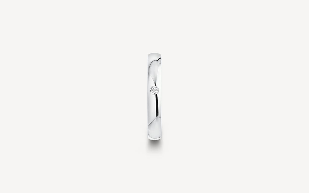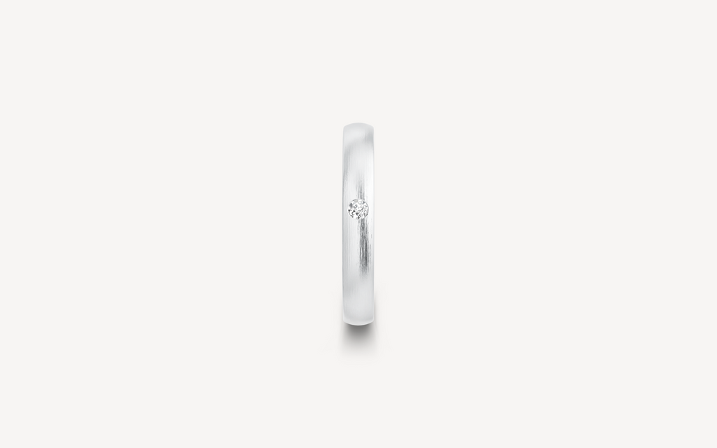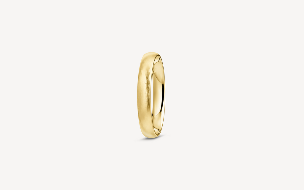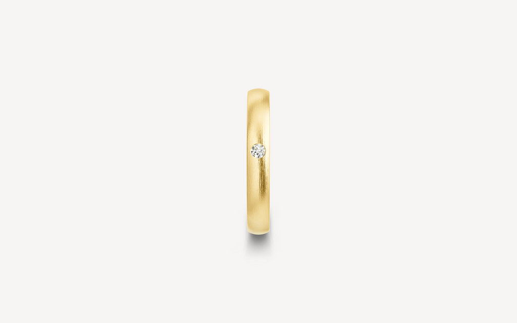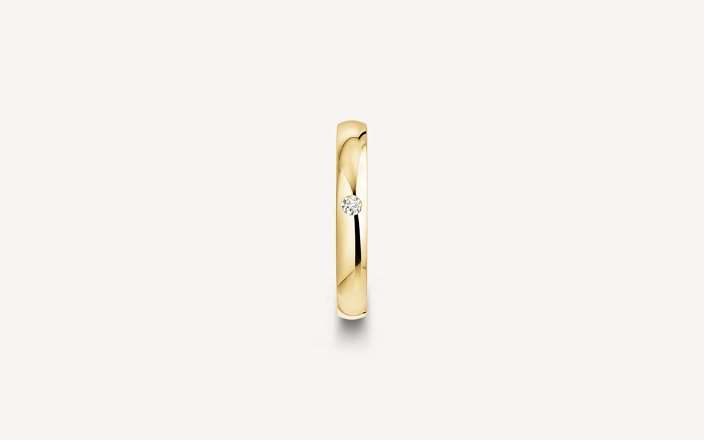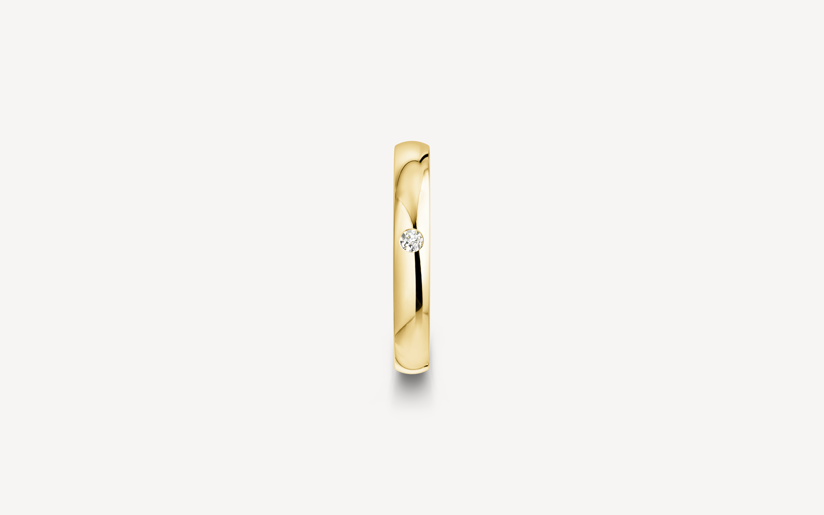 14kt guldring, 3mm bred og 1,4mm høj. Vælg modellen uden sten eller med en enkelt 0.03ct diamant G/SI. A-profilen er let afrundet med en diskret kant.