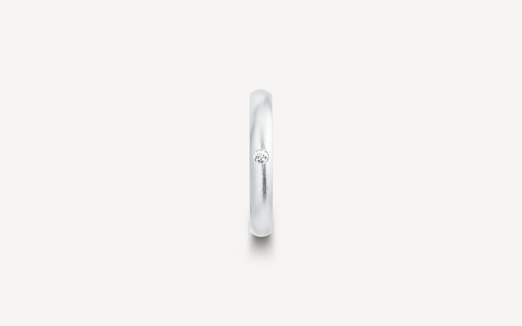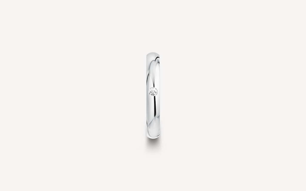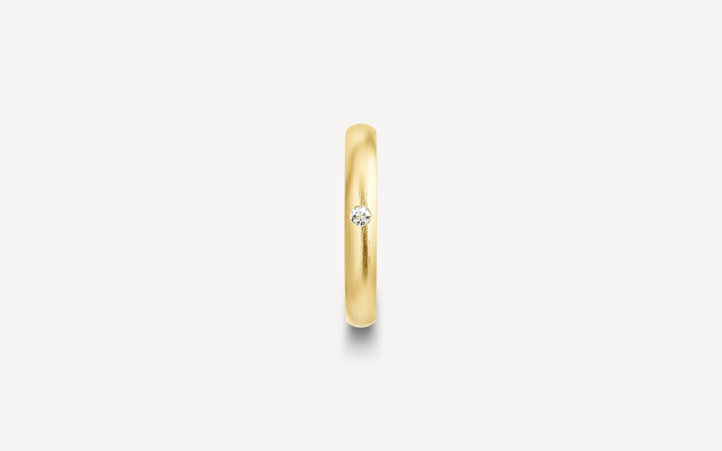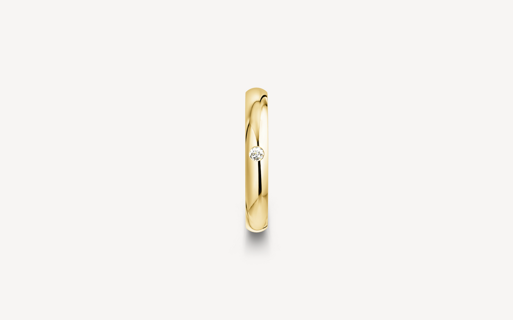 14kt guldring, 3mm bred og 1,4mm høj. Vælg modellen uden sten eller med en enkelt 0.03ct diamant G/SI. C-profilen er afrundet.