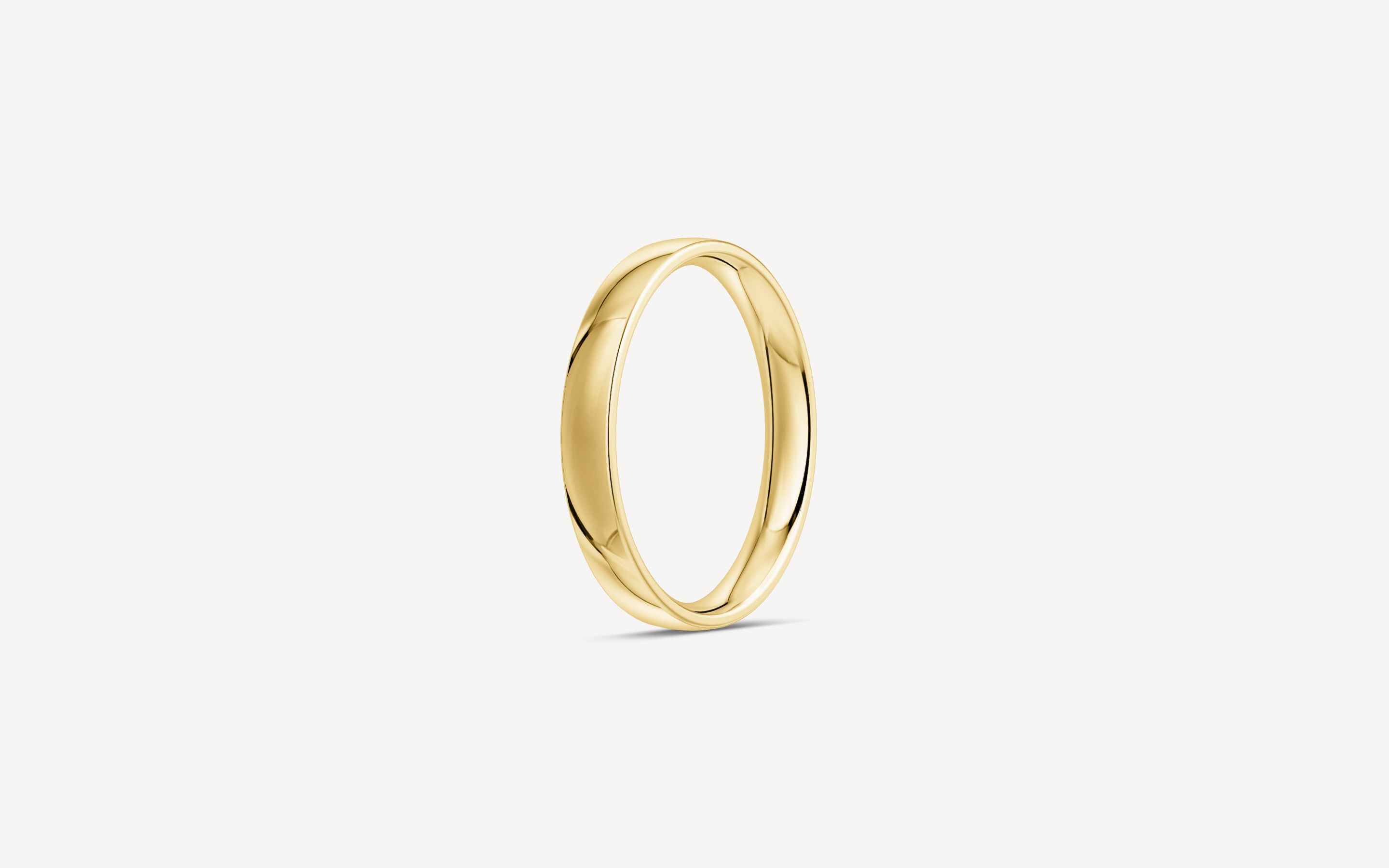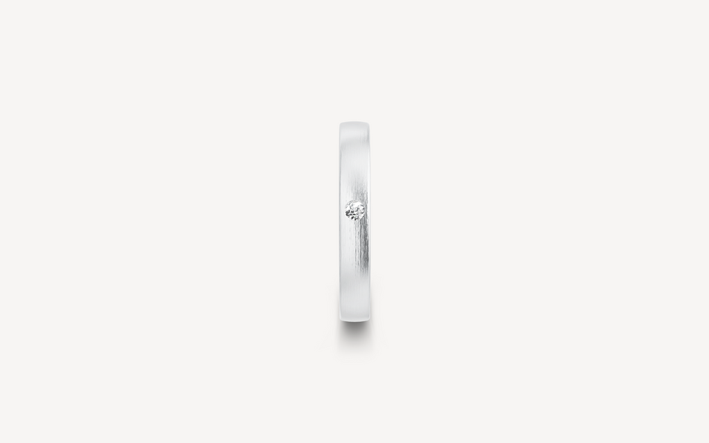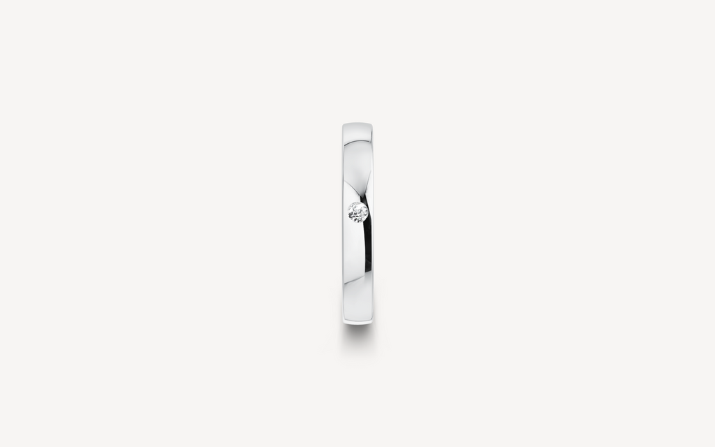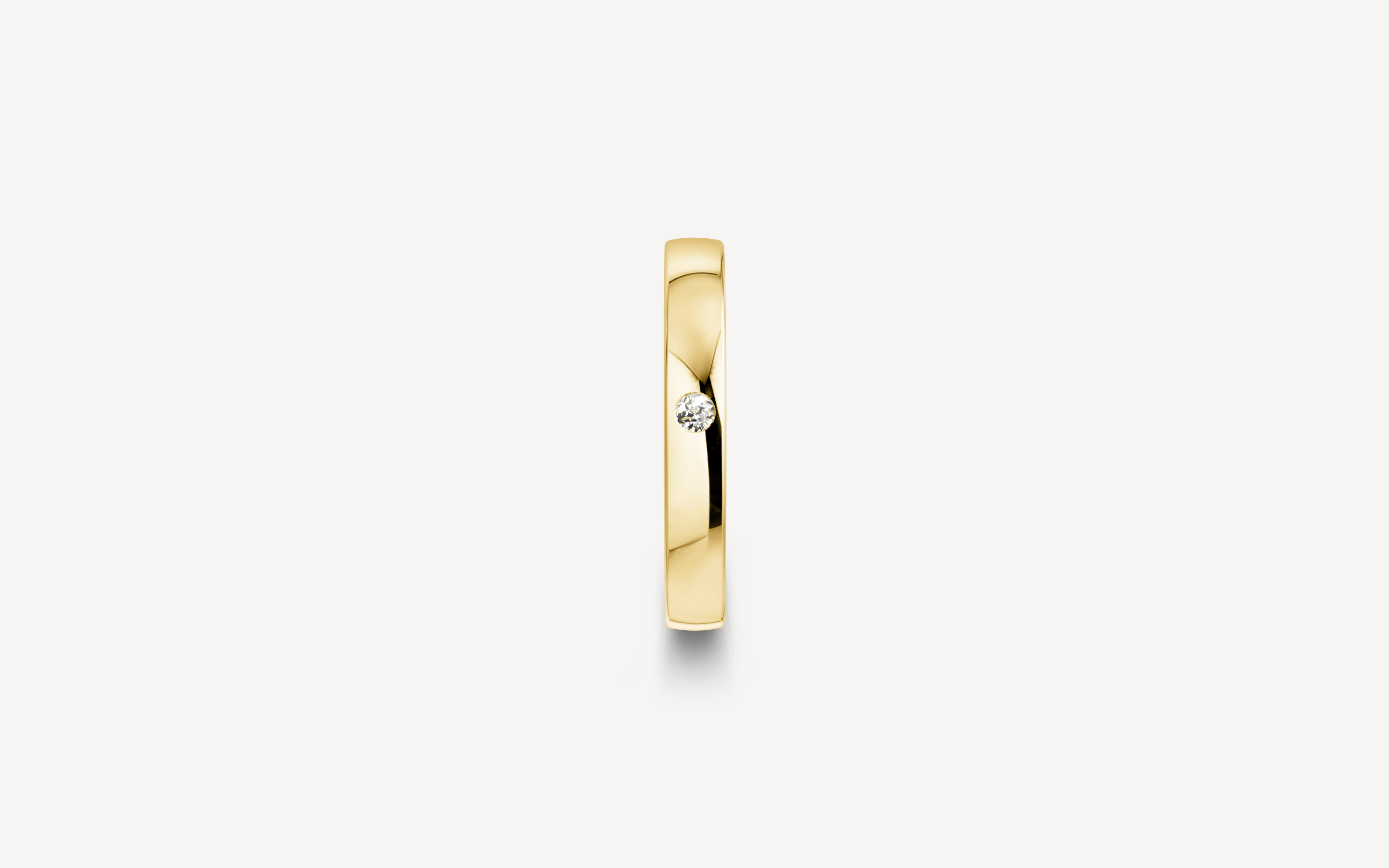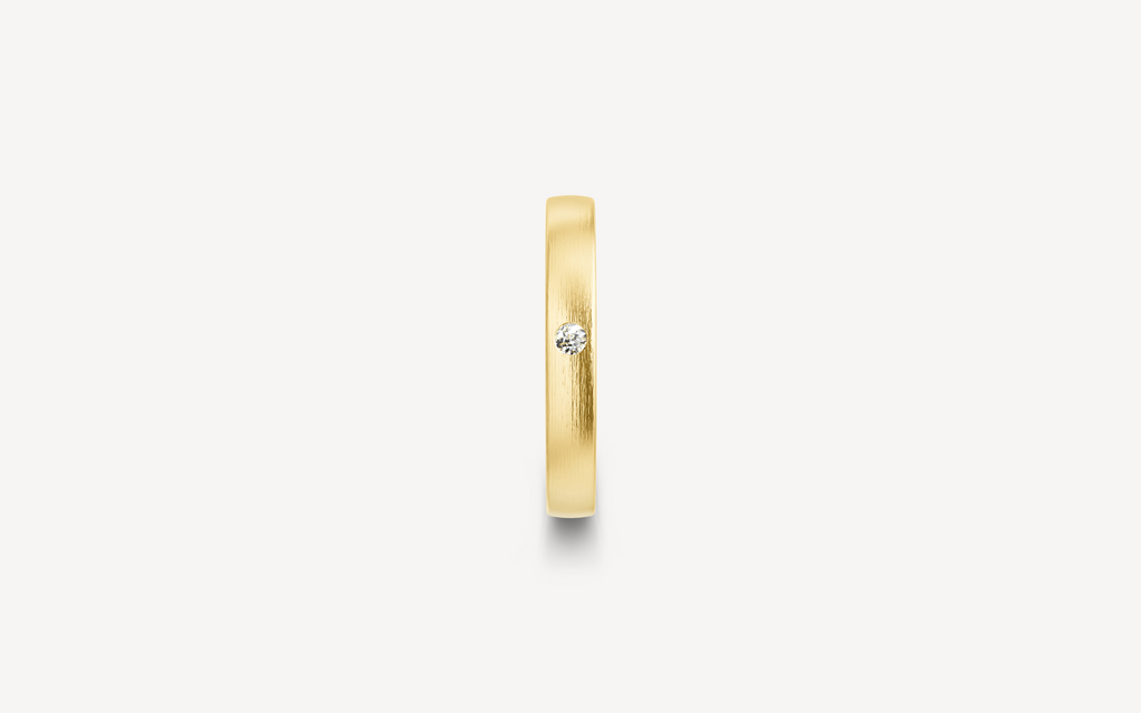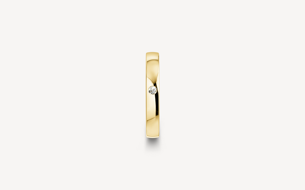 14kt guldring, 3mm bred og 1,4mm høj. Vælg modellen uden sten eller med en enkelt 0.03ct diamant G/SI. B-profilen har et fladt/firkantet design, der ligger behageligt på fingeren.