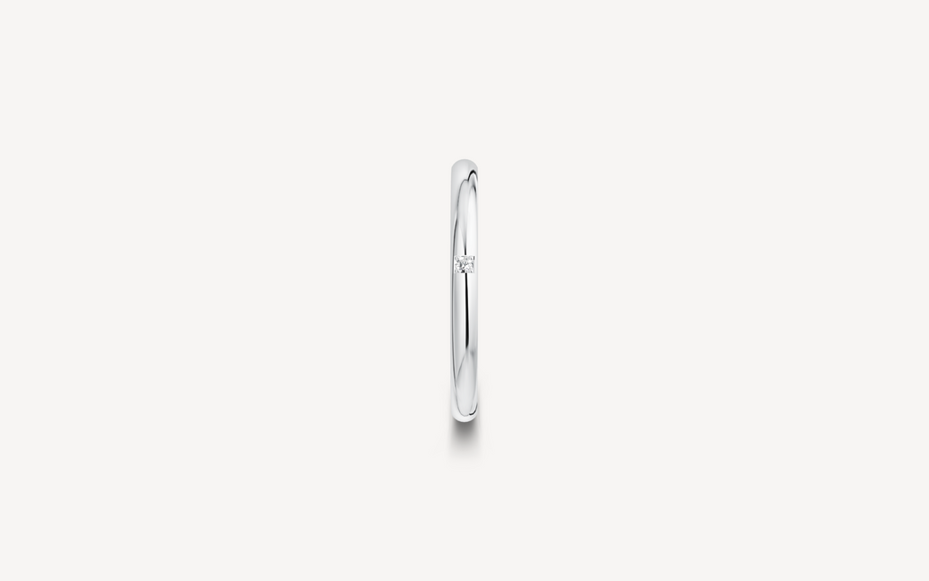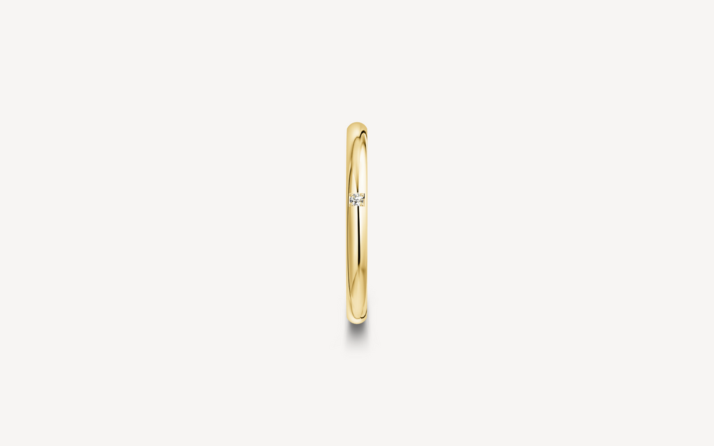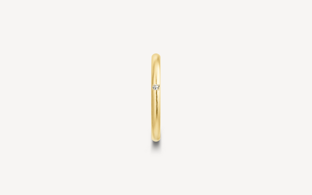 14kt guldring, 2mm bred og 1,4mm høj. Vælg modellen uden sten eller med en enkelt 0.01ct diamant G/SI. C-Profilen er afrundet.