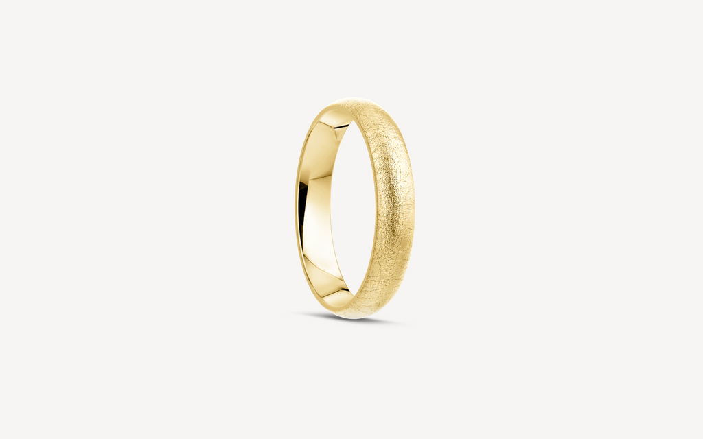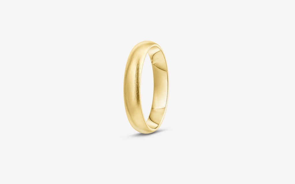 14kt guldring, 4mm bred og 1,6mm høj. C-profilen er afrundet.