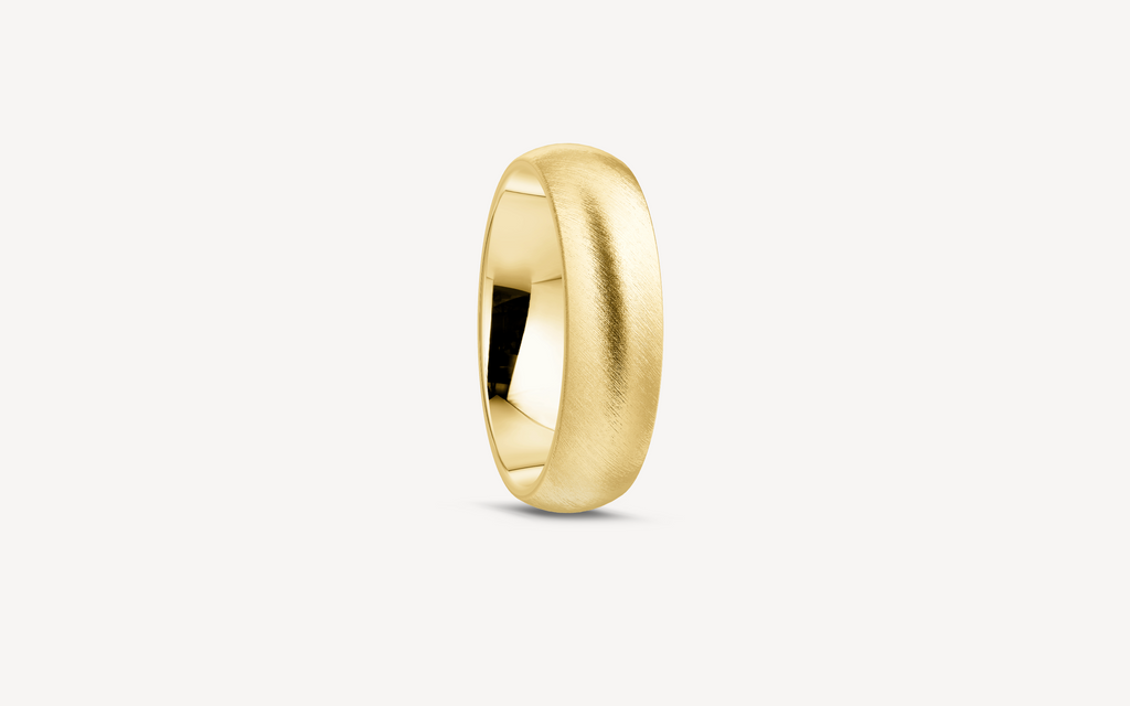 14kt guldring, 6mm bred og 2,0mm høj. C-profilen er afrundet.